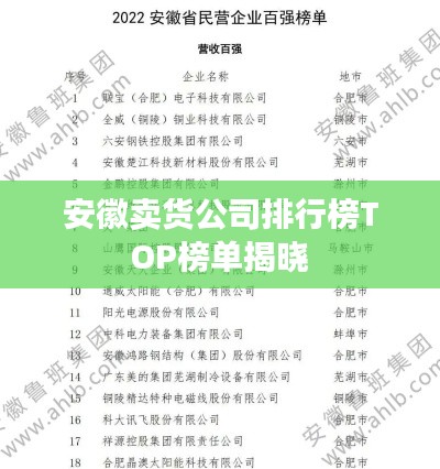 安徽省是中国经济较为发达的地区之一,其商业发展也日渐繁荣,随着电商的兴起和物流行业的快速发展,越来越多的卖货公司在安徽崭露头角,本文将介绍安徽卖货公司的排名,以便大家更好地了解这些企业的实力和业务范围。
