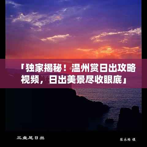 对于热爱旅行和摄影的朋友们来说,日出是一种无与伦比的美丽,温州,这座充满历史与文化底蕴的城市,其日出景色同样令人陶醉,我们就来分享一篇最新的温州赏日出攻略视频,带您领略温州的日出美景。