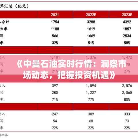 标题:《中曼石油实时行情:洞察市场动态,把握投资机遇》
