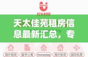 本文为大家提供了关于天太佳苑的租房信息大全,包括最新的房源、价格、环境等方面的信息以及租房过程中的注意事项,希望能够帮助大家更好地了解并选择合适的房源,在租房过程中,建议大家多比较、多了解,确保自己的权益得到保障。